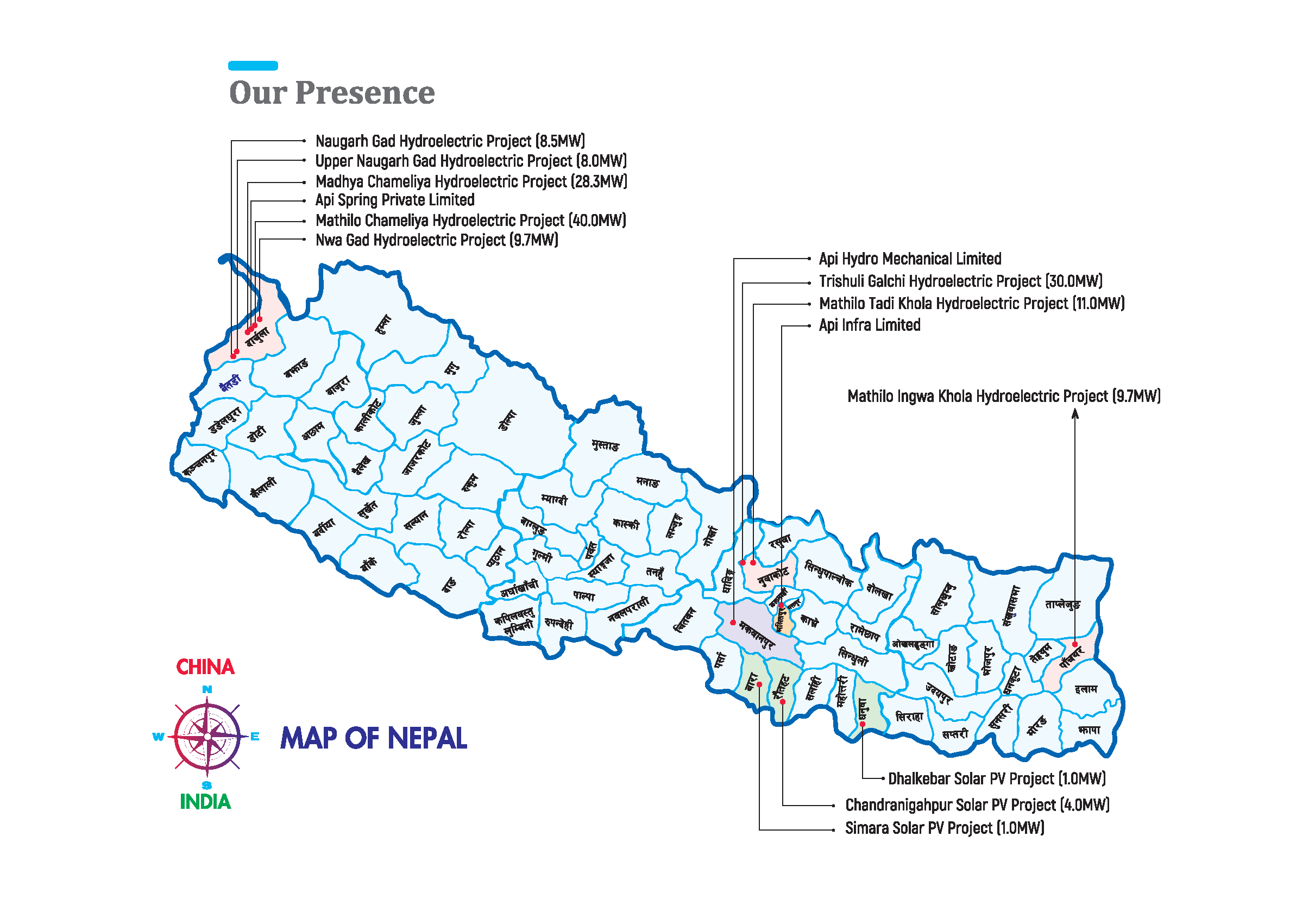 Surya Kunda Hydro Electric Limited, a company established and incorporated for the development and operation of hydro and solar projects to generate and supply electricity to National grid as its prime objective. The company has successfully constructed and is commercially operating 11.0 MegaWatt, Mathilo Tadi Khola Hydroelectric Project a run off river type project in Tadi river, a tributary of Trishuli river located at Dupcheswor Rural Municipality, Nuwakot district of Bagmati Province in the central region of Nepal. The major promoter/investor behind this company is Api Power Company Limited, a leading company in Nepal's Power Sector with Power Generation and Supply to National Grid as its core business. Api Power Company Limited has invested and has owned the 32,90,000 units shares i.e. 59% stake holding in the Company.